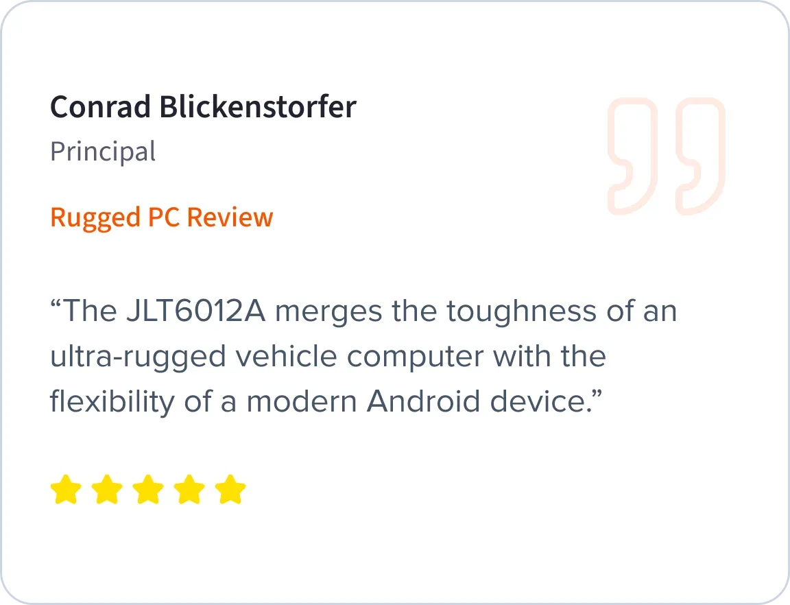 Empower your workforce to perform at their best with JLT Mobile’s high-performance, ultra-rugged vehicle-mounted computers engineered specifically for the most demanding industrial environments filled with dust, vibration, extreme temperatures, and unreliable connectivity.